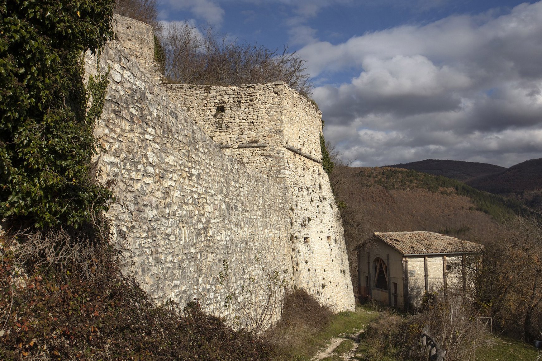 La Cappella di Santa Maria della Cerqua o della Quercia si trova fuori dalle mura cittadine, ai piedi del monastero di Santa Caterina, nel punto di congiunzione di due antiche vie di accesso al paese. La sua fondazione è collegata a un miracolo che tuttavia lo studioso seicentesco Ludovico Jacobilli colloca in un altro luogo, raccontando che il venerabile eremita Liberto o Gilberto si trovava, nella seconda metà del XIV secolo, presso la chiesa di Santa Maria del Piano de Equo, nella valle di Ruscio (territorio di Monteleone di Spoleto), ed era in cammino verso Rescia (altra frazione di Monteleone). Stanco e accaldato, si fermò a riposare presso un albero recante un’immagine della Madonna, alla quale rivolse una preghiera. Al risveglio, il bastone che aveva conficcato nel terreno rifiorì; accanto ad esso crebbe una grande quercia e sgorgò una sorgente d’acqua limpida. Nella relazione della visita pastorale del vescovo Carlo Giacinto Lascaris, tra il 3 e il 10 ottobre 1712, si legge invece che il miracolo della quercia (distinto da quello della sorgente) ebbe luogo sul pendio vicino al monastero di Santa Caterina, dove sorge la piccola chiesa della Madonna della Quercia. È probabile che vi sia una contaminazione della storia religiosa locale (che attribuisce a Liberto il miracolo del bastone rifiorito) con il culto della Madonna della Quercia di Viterbo. Questa fusione fu probabilmente favorita dalla posizione geografica di Monteleone, situata lungo il percorso della transumanza (praticato dai pastori per condurre le greggi al pascolo tra l’Appennino umbro-marchigiano e la Maremma), lungo il quale sorsero numerosi sacelli dedicati al culto viterbese. Le prove del legame tra la Madonna di Viterbo e Monteleone sono attestate sia nelle fonti documentarie (nel 1518 un mercante di Monteleone intratteneva rapporti con i frati della Quercia, mentre nel 1576 un cittadino di Monteleone fece un lascito devozionale allo stesso santuario) sia nelle testimonianze iconografiche (alla fine del XV secolo, nella chiesa di San Francesco, erano presenti tre dipinti votivi con l’iconografia del busto della Madonna con il Bambino, identificata da un’iscrizione come “Madonna della Cerqua”).